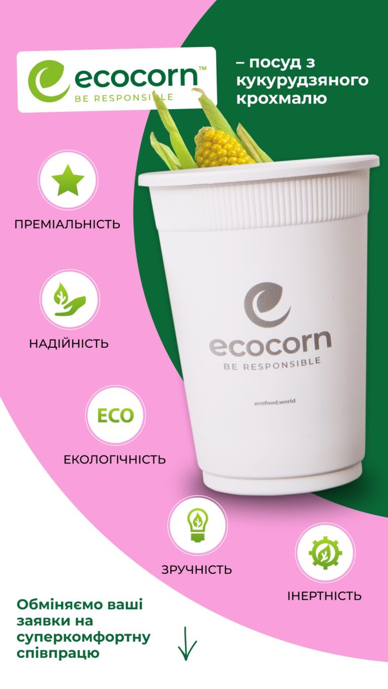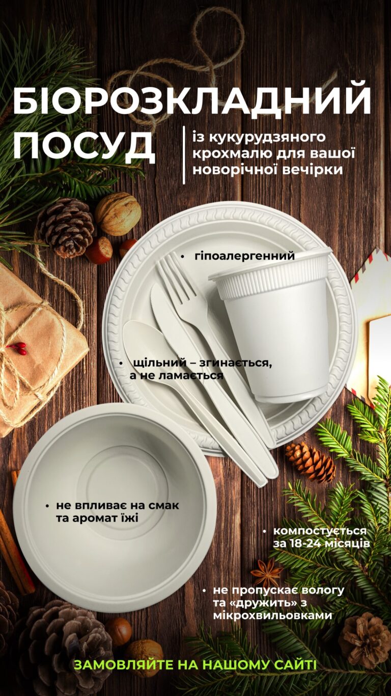 Ми створили серію яскравих, динамічних візуалів, які одночасно поєднують екологічність і сучасну стилістику. Головний акцент зробили на натуральності та інноваційності продукту — посуду з кукурудзяного крохмалю.