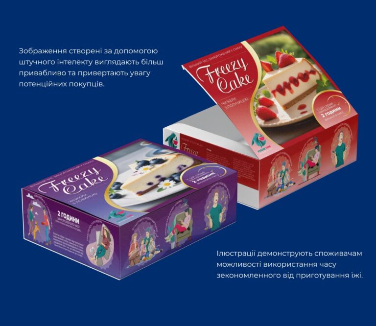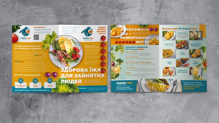 Freeze Time отримав цілісну систему візуальної комунікації, яка вигідно відрізняє бренд на ринку заморожених продуктів.