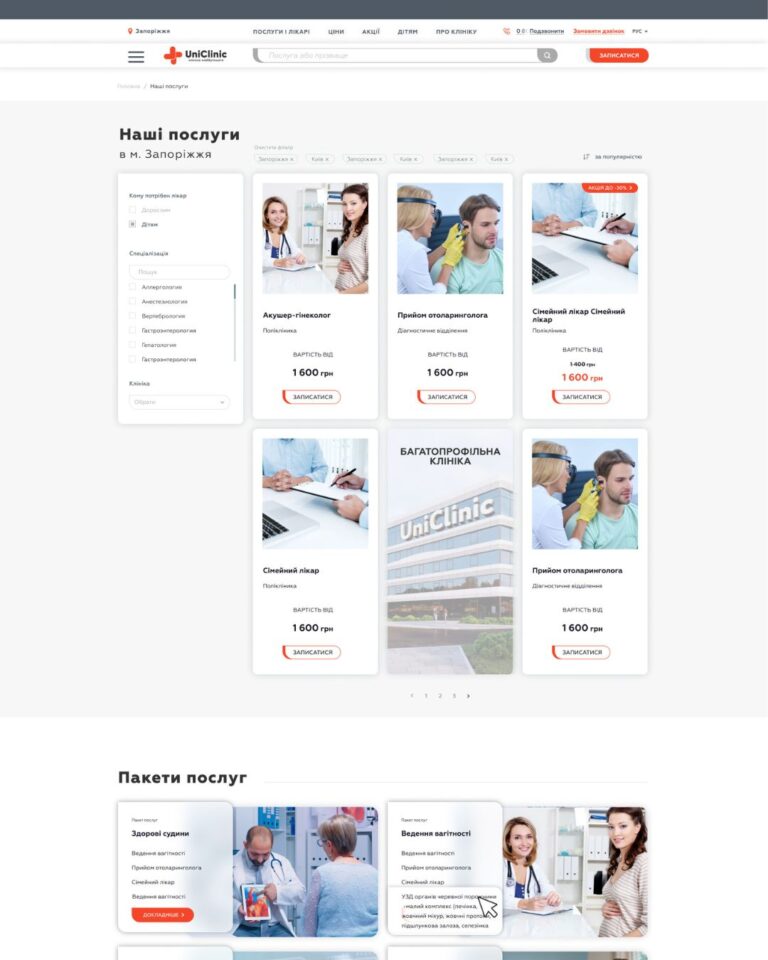 Опрацювали систему візуальної ієрархії: ключові кнопки («Записатися», «Обрати лікаря») завжди у фокусі.